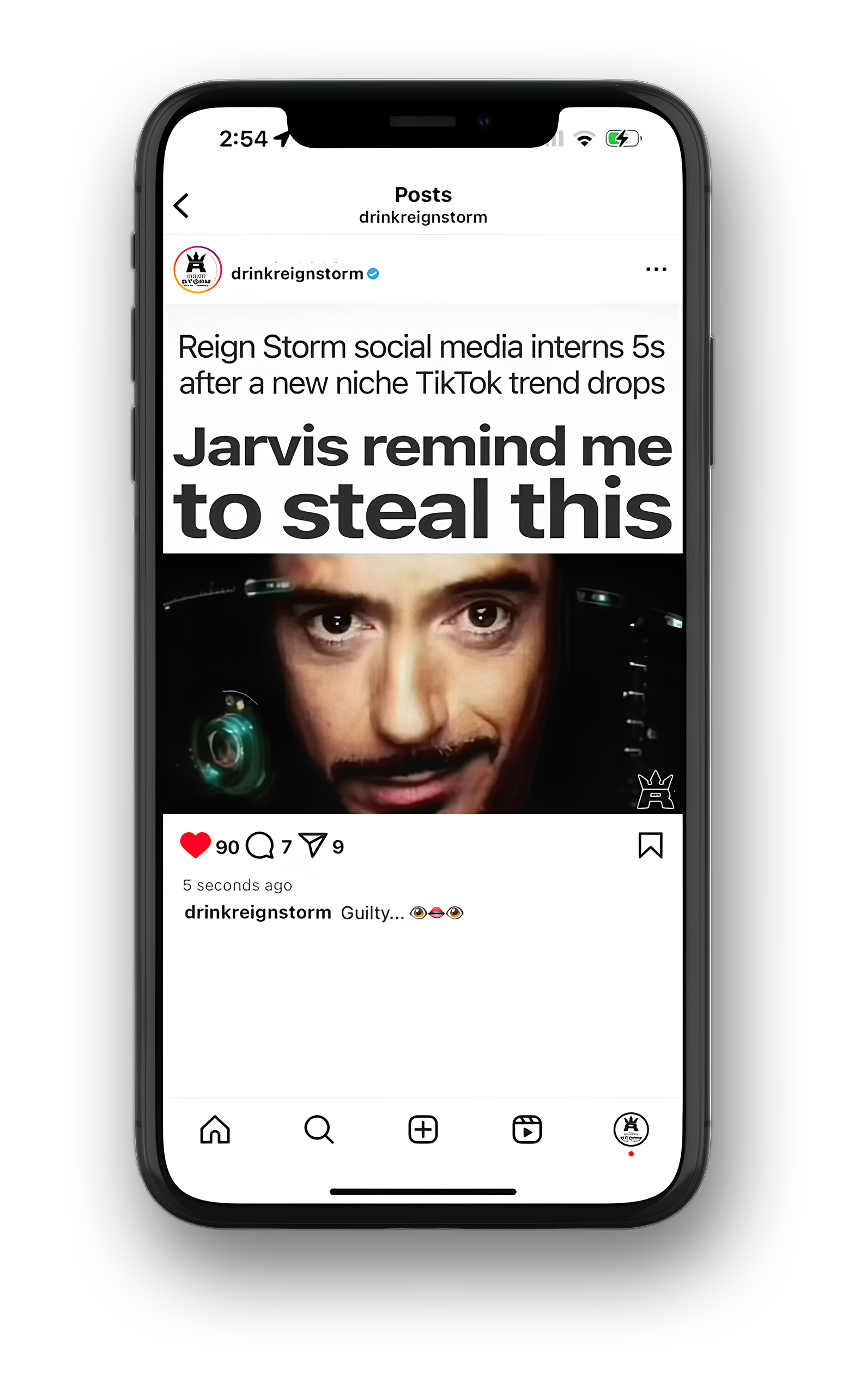 Infusing a hypothetical, first-time Reign Storm drinker’s reaction into a viral meme format adds personality and humor while highlighting the drink’s clean ingredients, all while staying aligned with the brand’s youthful and fun energy— Lean into Lo-fi.